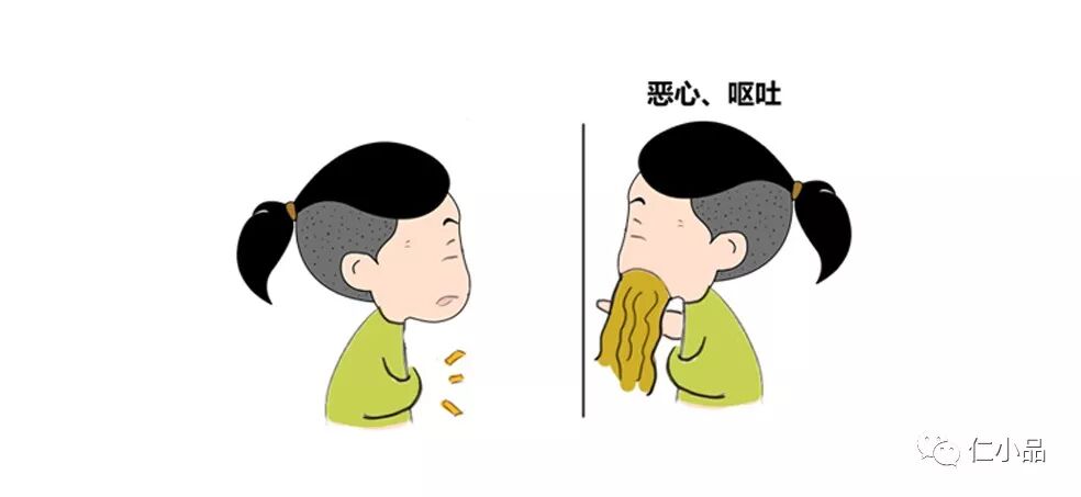 如果吃太饱或摄取难消化、易产生胃酸、胃胀的食物,如碳酸饮料、橘子、糯米等,容易使副交感神经受刺激,将导致胃酸分泌,更容易引发呕吐。