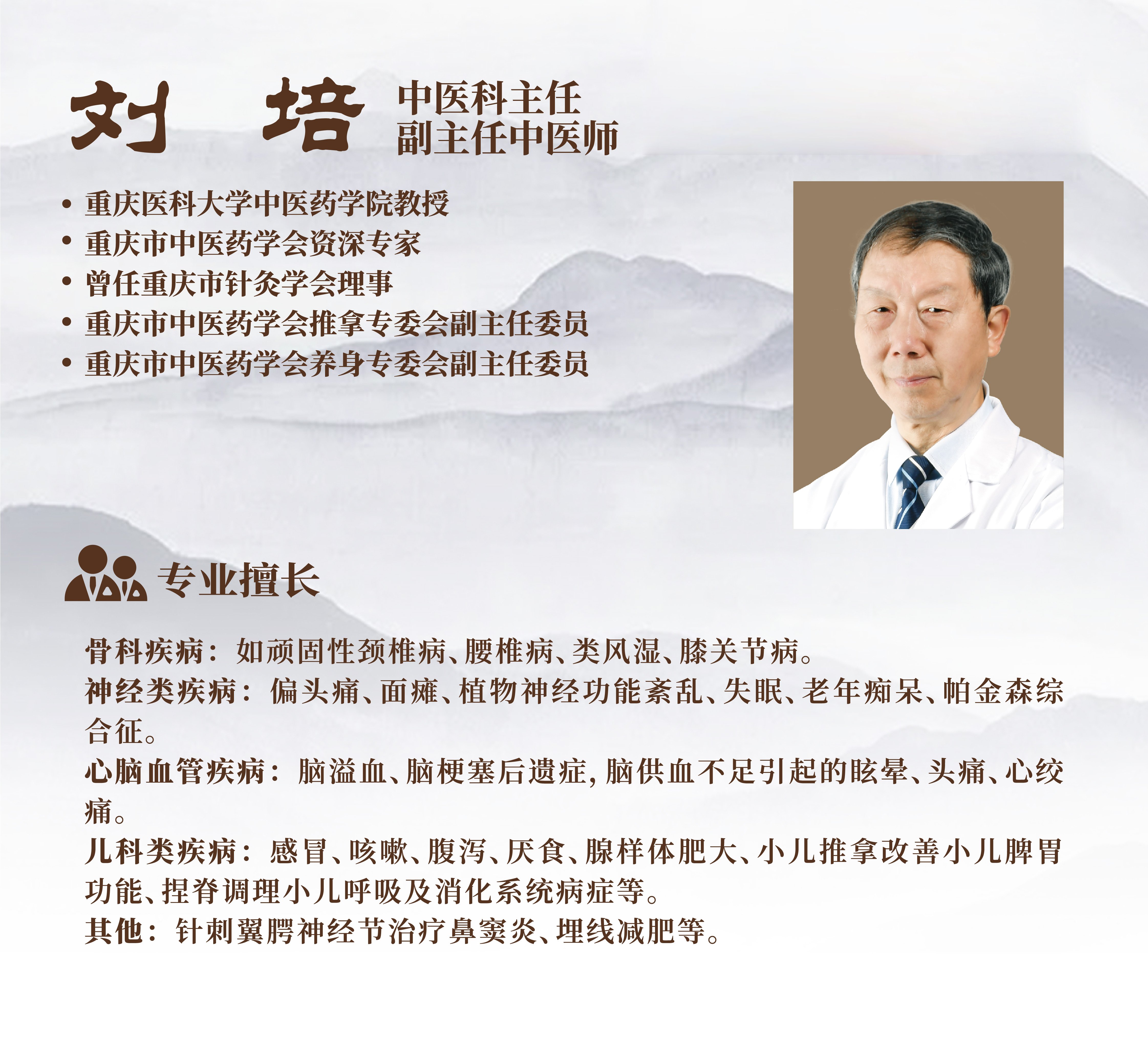 作为重庆医科大学中医药学院教授,刘培的学术背景堪称“双栖”:他既潜心研究中药、针灸、推拿等传统技艺,又精通现代康复技术,善于将最新的康复理念融入治疗。