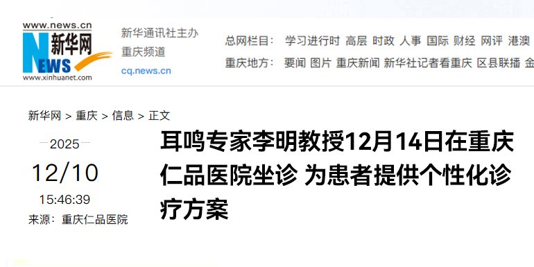 耳鸣专家李明教授12月14日在重庆仁品医院坐诊 为患者提供【阅读】