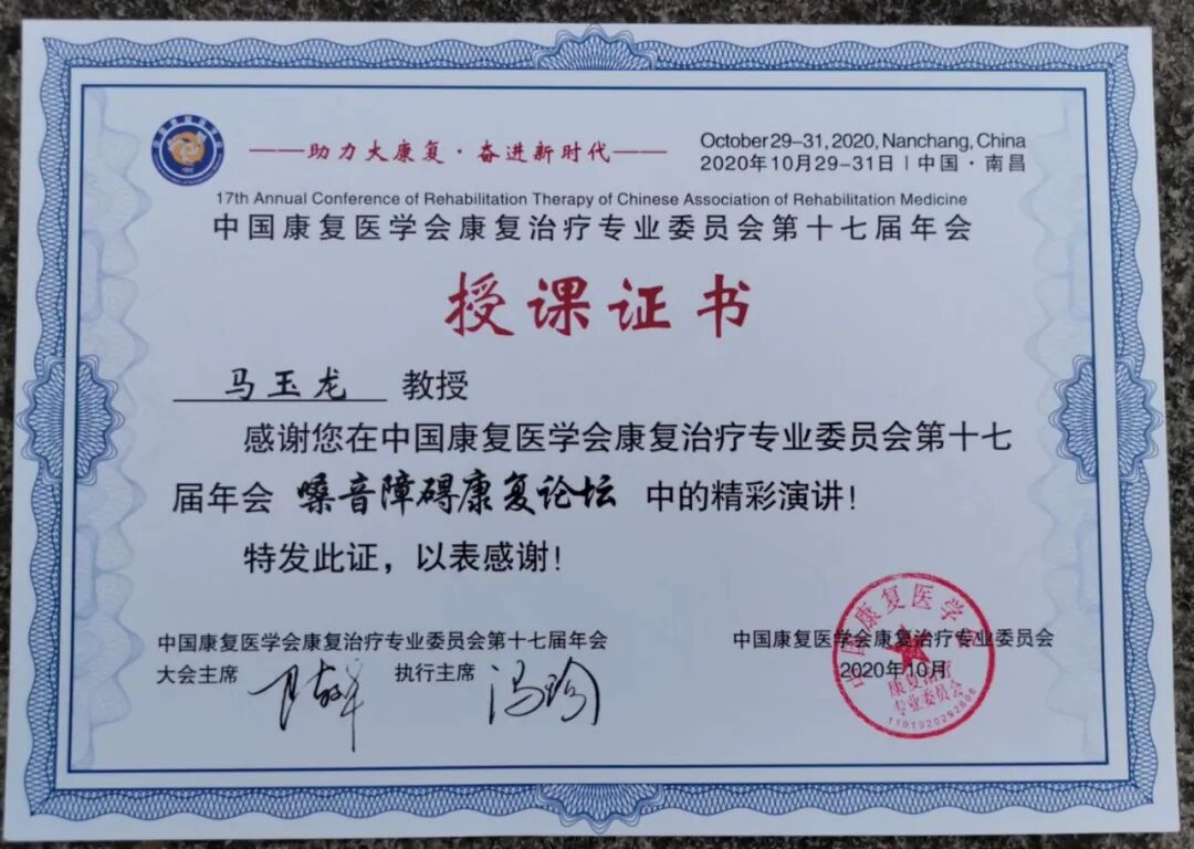 “助力大健康·奋进新时代”。2020年10月29日-31日,中国康复医学会康复治疗专业委员会第十七届年会在江西南昌国际博览城绿地铂瑞酒店举行。重庆仁品耳鼻喉医院马玉龙作为授课嘉宾,特邀出席会议。