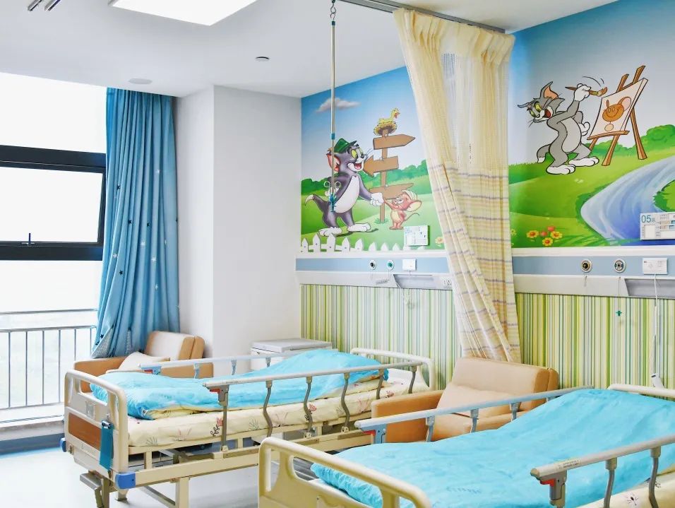 为了让患儿住院期间不哭不闹,我院将整个九楼打造成儿童病房:墙纸、挂画、被褥都是孩子喜欢的卡通元素,房间里的电视机播放着动画片,桌上有各种各样的玩具……在仁品住院的孩子不再恐惧治疗,少了哭闹,多了笑声,更利于他们的康复。